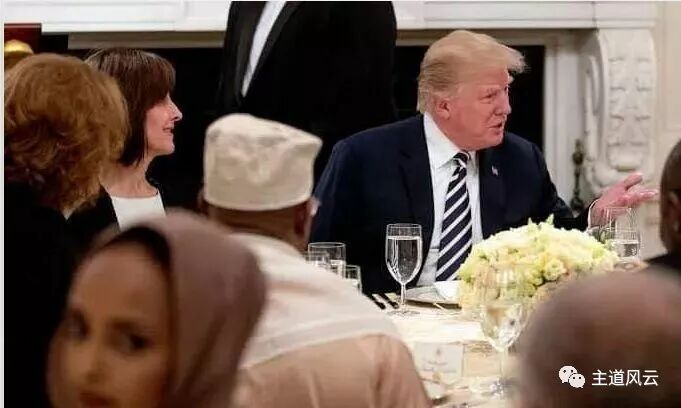 在晚宴结束时,特朗普总统发表了开斋晚宴上的演讲:作为美国总统,我谨代表美国人民恭祝全球穆斯林拥有一个吉庆的莱麦丹斋月