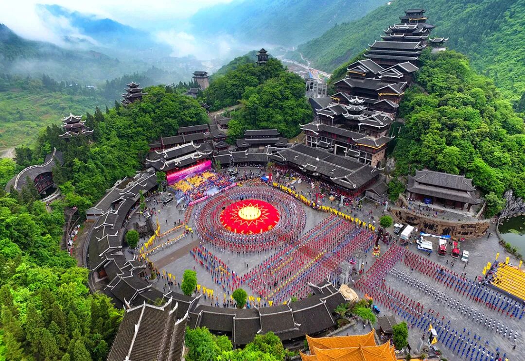 2016年5月14日,四月初八,重庆市彭水县新落成的国家AAAA级景区蚩尤九黎城里,人头攒动。
