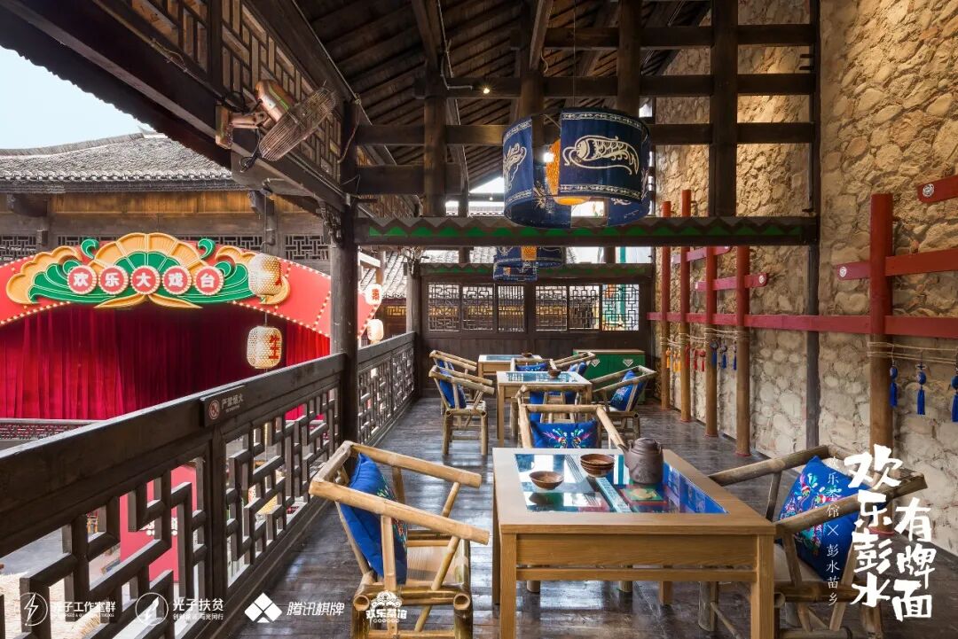 这家茶馆有一个响亮的名字——彭水苗乡欢乐茶馆。这是光子工作室群腾讯棋牌与重庆彭水合作下的创新扶贫项目,用有限的空间,承载彭水苗乡悠悠千年的脉搏。